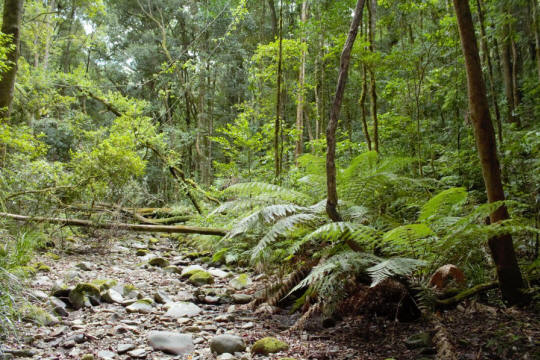 Sharpes Creek at Gloucester Tops in Barrington Tops National Park NSW The walk takes you along Sharpes Creek on an old logging trail through regenerating rainforest which was heavily logged in the 1940's. It crosses the creek a couple of times before leaving the gully & up through a hardwood forest dominated by young Sydney Blue Gum regrowth.